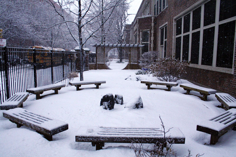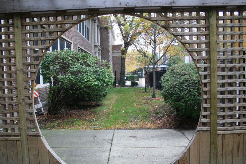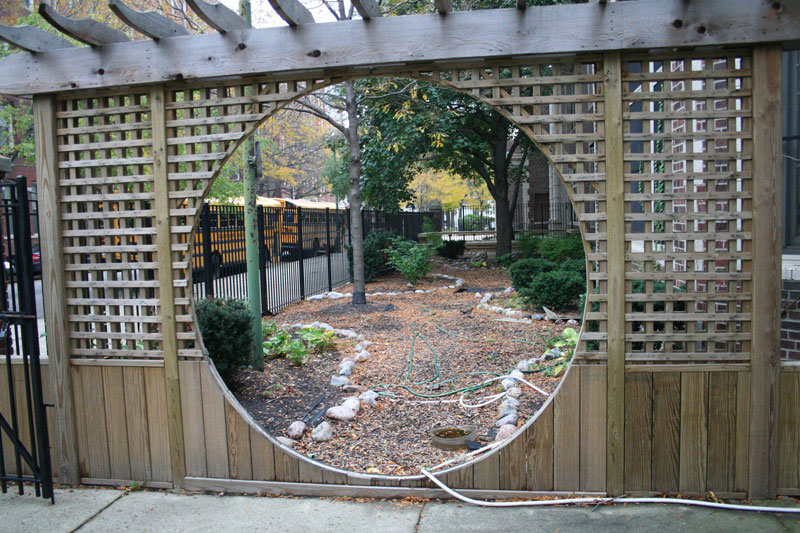 classroom. On the other side, a mulch path takes